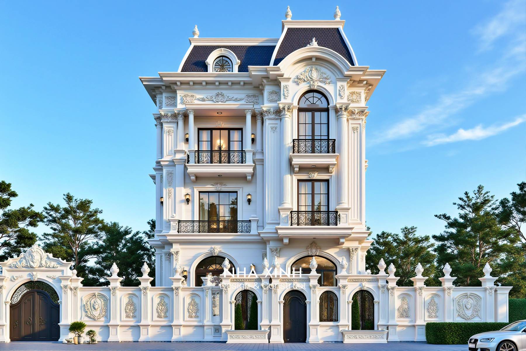 Mang phong cách cổ điển Châu Âu, kiến trúc công trình nổi bật với những đường nét, hoa văn cầu kỳ, tinh tế. Cũng bởi thế nên dù cho chỉ khoác lên mình lớp áo màu trắng cũng không thể làm mất đi sự thu hút ánh nhìn. Bên cạnh đó, điều tạo nên điểm nhấn cho ngôi biệt thự này đó chính là phần Mansard đặc trưng trong thiết kế lâu đài Pháp. Các KTS đã thể hiện một cách hoàn hảo, mô phỏng gần như hình ảnh tráng lệ và nguy nga của kiến trúc cổ điển.
