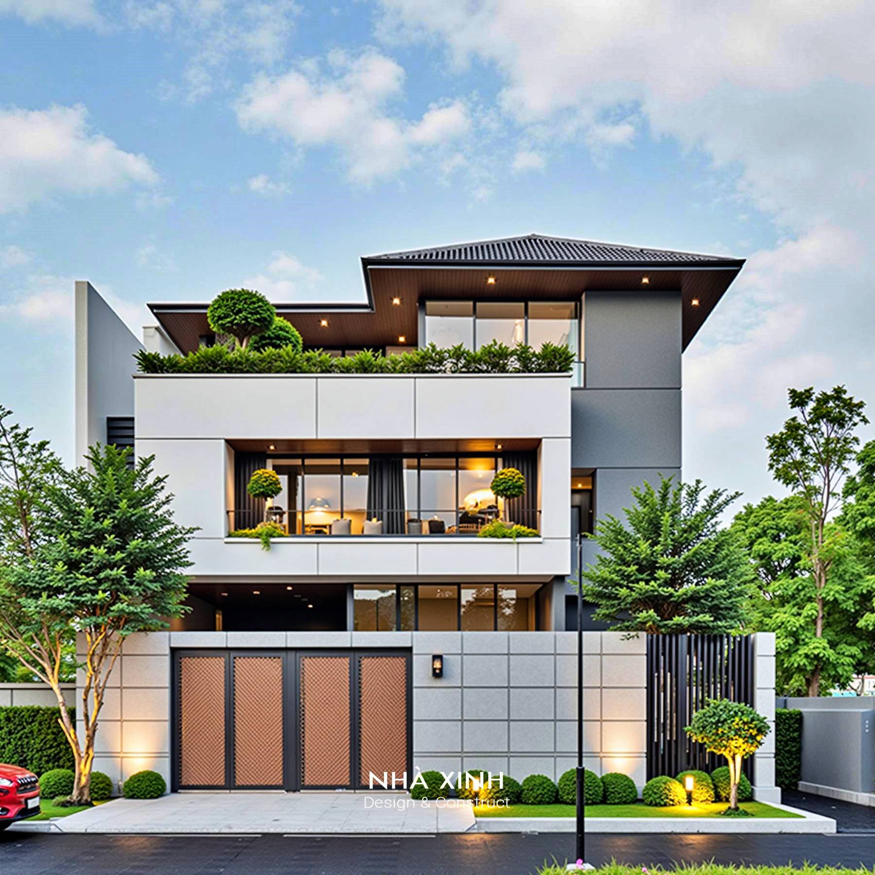Thiết kế biệt thự hiện đại mái Nhật 3 tầng