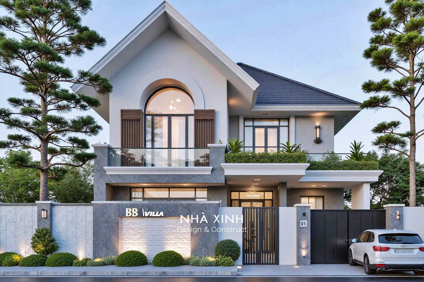 Biệt thự mái thái 2 tầng đang trở thành xu hướng thiết kế được nhiều người yêu thích nhằm hướng đến không gian sống lý tưởng, tiện nghi và hiện đại. Mẫu biệt thự phong cách hiện đại thường ưu tiên sử dụng với gam màu trung tính nhẹ nhàng và thanh lịch. Cùng kiểu mái thái có độ dốc lớn giúp thoát nước hiệu quả, vừa đảm bảo được yếu tố phong thủy.