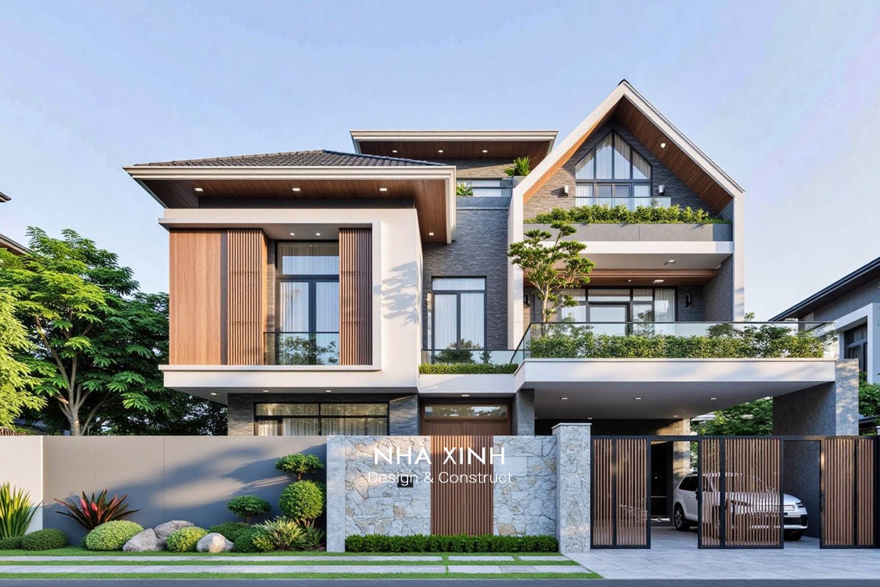 - Mẫu biệt thự hiện đại mái Thái 2 mặt tiền