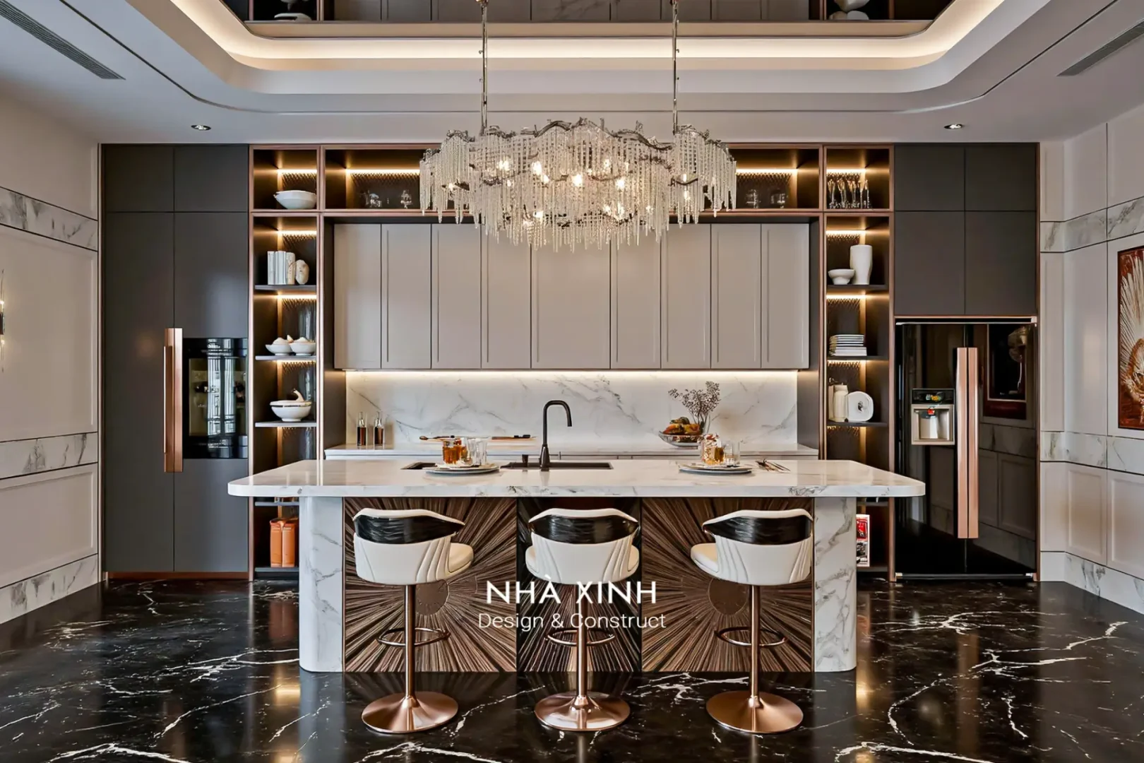 Tổng diện tích thiết kế nội thất: (Thông tin chi tiết về diện tích không gian nội thất sẽ được bổ sung tùy theo căn mẫu, ví dụ: khoảng 310m² sàn sử dụng)