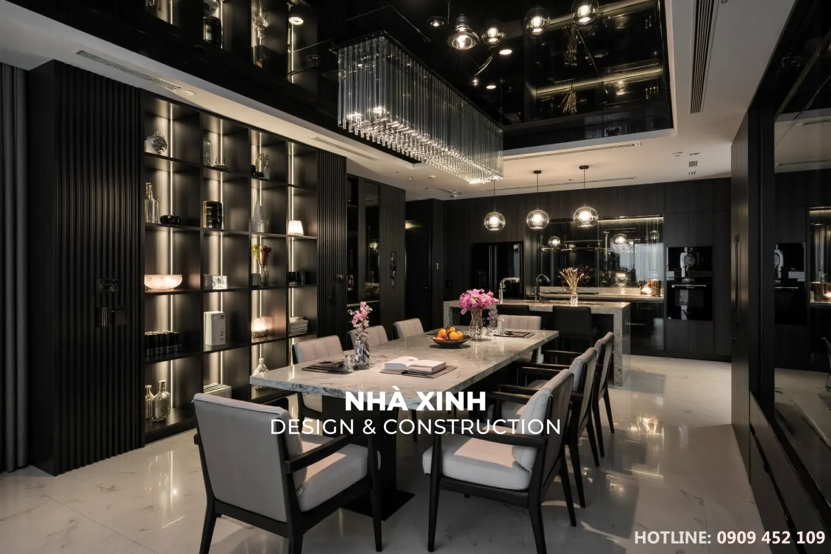 Nội thất tại Rose Villa Riverside, do Nhà Xinh thiết kế, tập trung vào việc tạo ra một bầu không khí ấm cúng, gần gũi với thiên nhiên và đầy cảm xúc. Gam màu pastel dịu nhẹ như xanh mint, hồng nhạt, trắng kem, kết hợp với vật liệu tự nhiên như gỗ sáng màu, vải linen và các chi tiết trang trí thủ công, mang đến vẻ đẹp thanh thoát và lãng mạn. Hệ thống cửa kính lớn và ban công rộng rãi được thiết kế để tối đa hóa tầm nhìn ra mặt nước êm đềm và không gian xanh xung quanh, mời gọi ánh sáng và gió trời vào từng căn phòng. Khu vực phòng khách và phòng ăn được bố trí để tận hưởng trọn vẹn cảnh quan, tạo cảm giác như đang nghỉ dưỡng tại một biệt thự ven sông. Rose Villa Riverside không chỉ là một ngôi nhà, mà là một chốn bình yên lý tưởng, nơi quý vị tìm thấy sự cân bằng, thư thái và tận hưởng những khoảnh khắc lãng mạn bên gia đình.