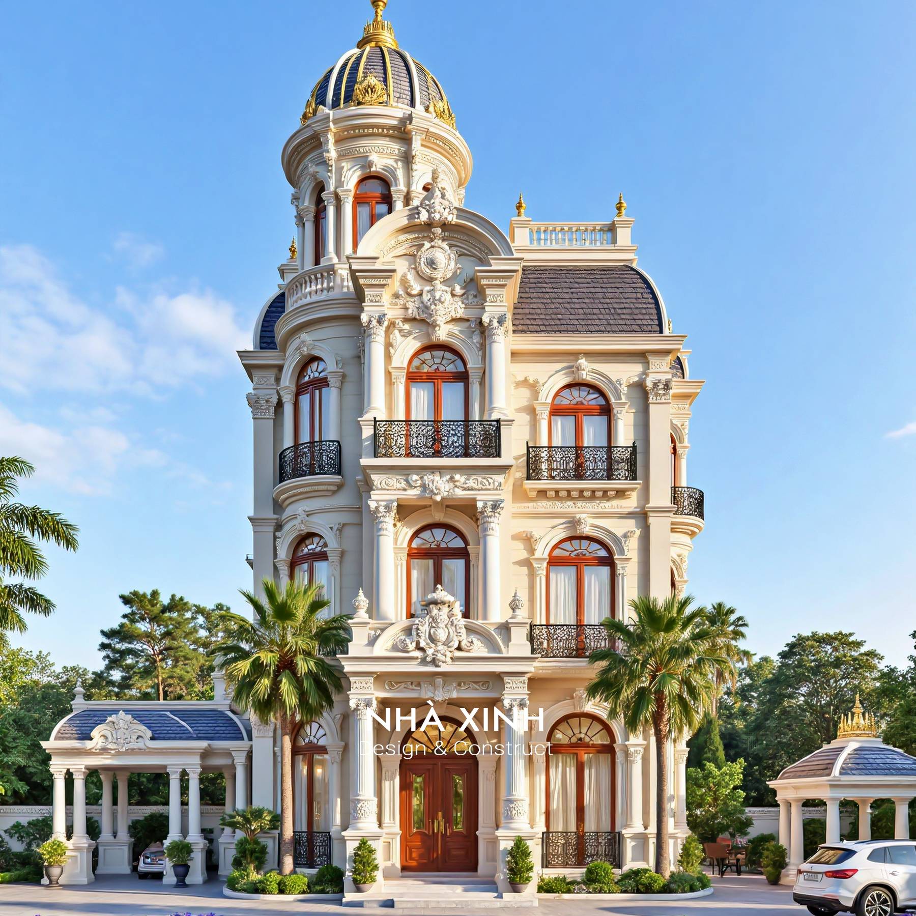 Trang chủ/ 111+ Mẫu Thiết Kế Biệt Thự Cổ Điển Kiểu Pháp Đẹp, Đẳng Cấp / Mẫu Thiết Kế Biệt Thự Cổ Điển Hoàng Gia Giữa Lòng Đô Thị – BT223