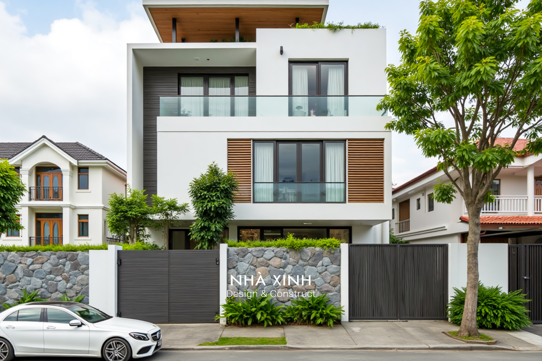 Mẫu thiết kế kiến trúc biệt thự hiện đại sân vườn mái Nhật