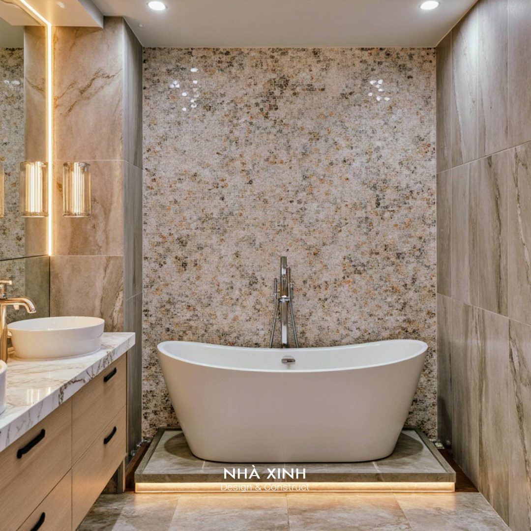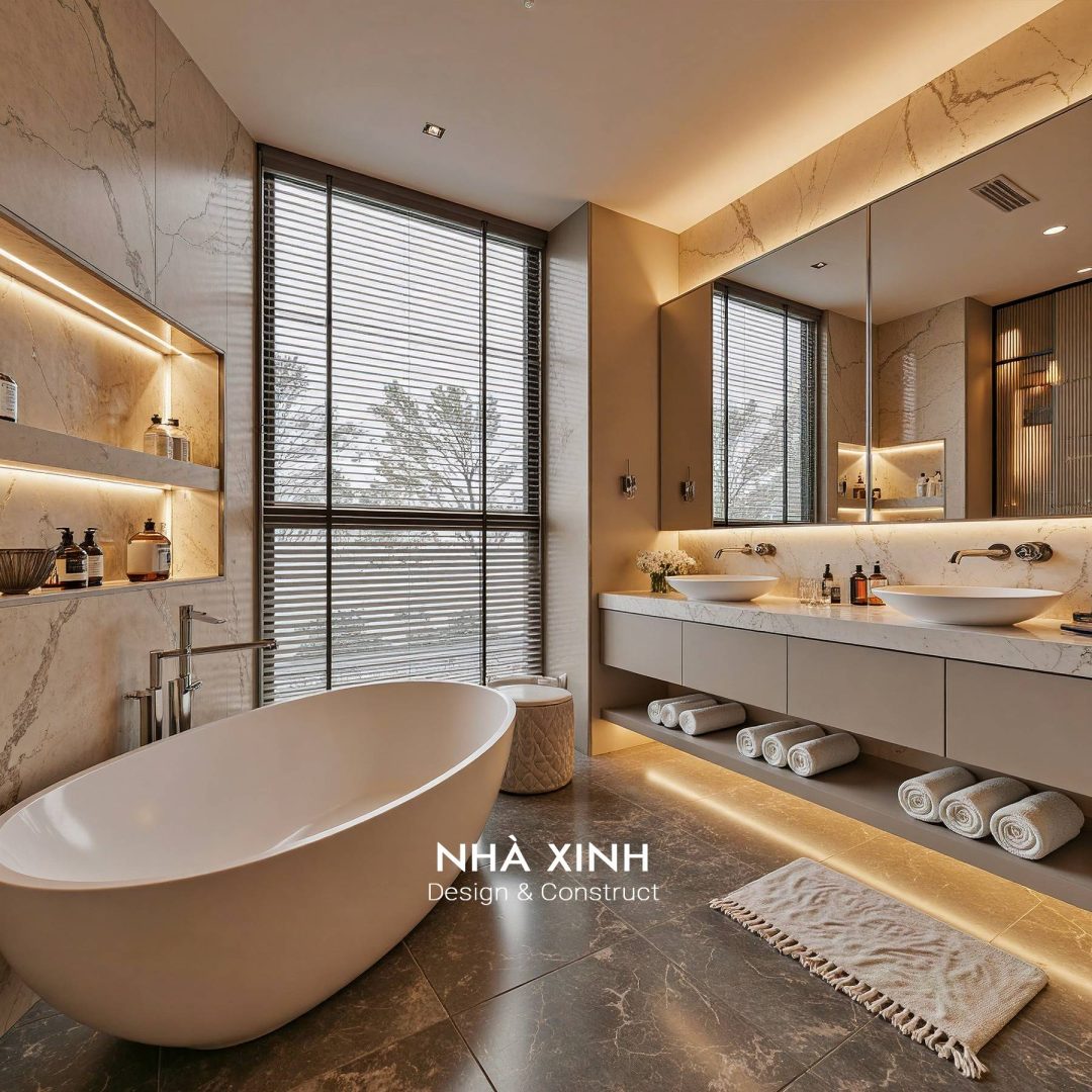 Nội thất phòng tắm WC ngày nay cũng là một trong những công trình rất được gia chủ chú trọng trong khi thiết kế nội thất tân cổ điển. Khi thiết kế, căn phòng này cũng cần đảm bảo phải hài hòa với tổng thể chung, đặc biệt là sạch sẽ, thoáng mát, dễ dàng lau chùi.