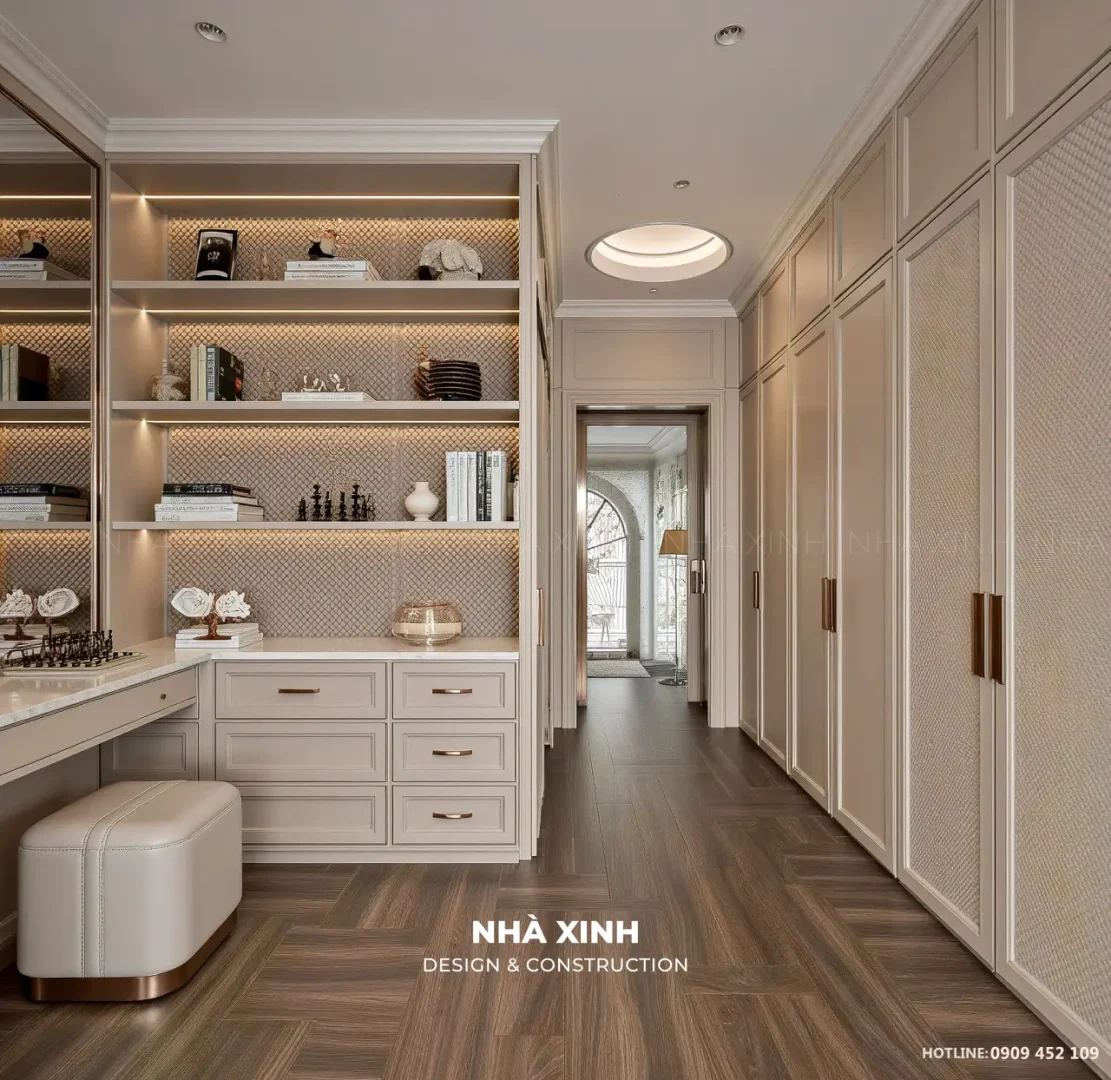 Nội thất tại Rose Villa Blooming, do Nhà Xinh thiết kế, là sự kết hợp tinh tế giữa phong cách Luxury Modern và Neo-Classic, mang đến sự ấm cúng, lãng mạn và đẳng cấp. Gam màu hồng phấn dịu nhẹ, trắng ngà, vàng đồng được điểm xuyết khéo léo trên nền vật liệu cao cấp như đá cẩm thạch, gỗ tự nhiên quý hiếm và pha lê lấp lánh. Hệ thống cửa kính lớn và ban công rộng mở không chỉ đón trọn ánh sáng tự nhiên mà còn đưa khung cảnh xanh tươi, trong lành của công viên sinh thái vào từng căn phòng. Mỗi không gian, từ phòng khách trang nhã đến phòng ngủ thư giãn, đều được chăm chút tỉ mỉ, tạo nên một “khu vườn” riêng tư và lộng lẫy, nơi quý vị có thể tận hưởng cuộc sống viên mãn. Rose Villa Blooming không chỉ là một ngôi nhà, mà là một tác phẩm nghệ thuật sống, nơi mỗi khoảnh khắc là sự tận hưởng của vẻ đẹp và sự bình yên.