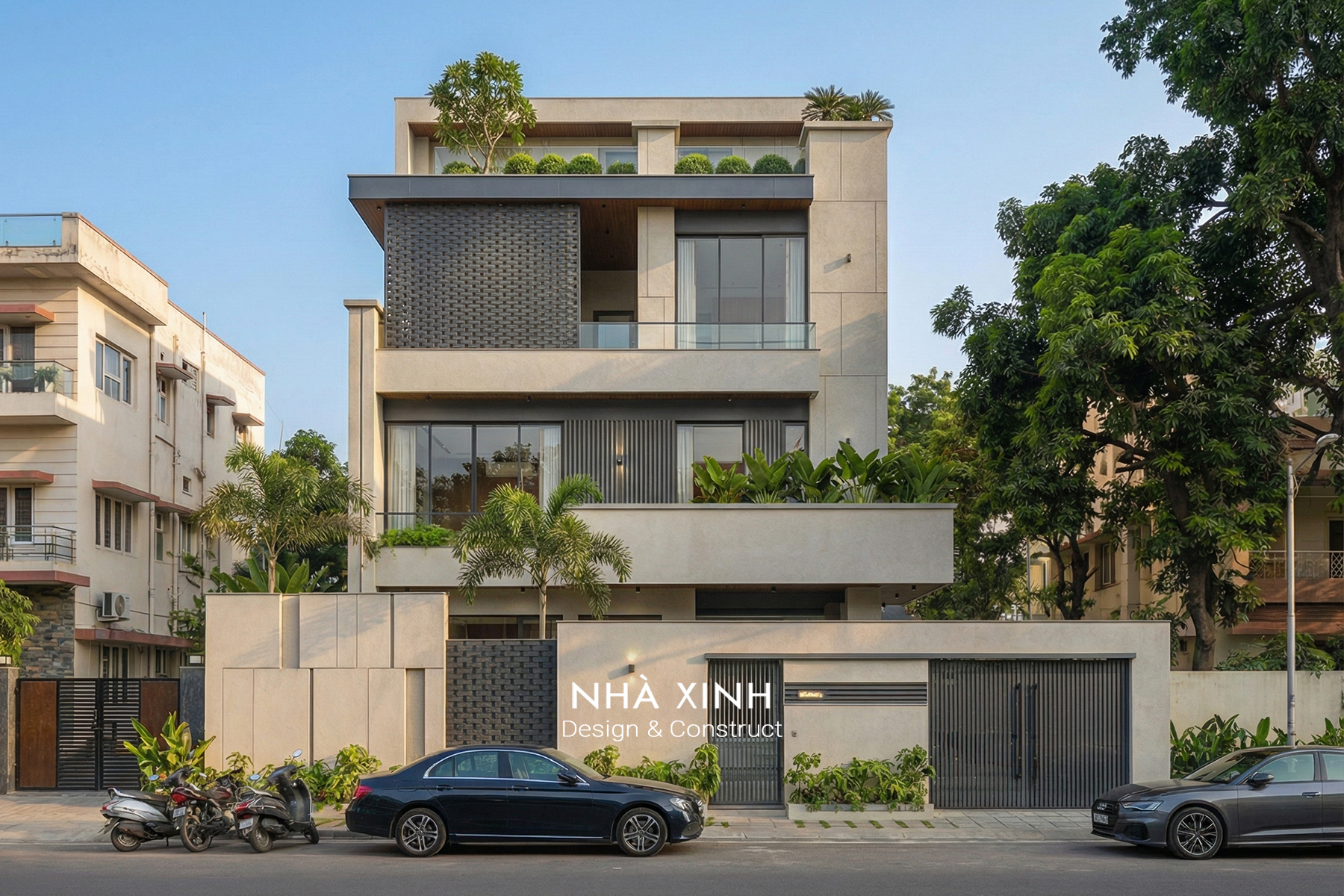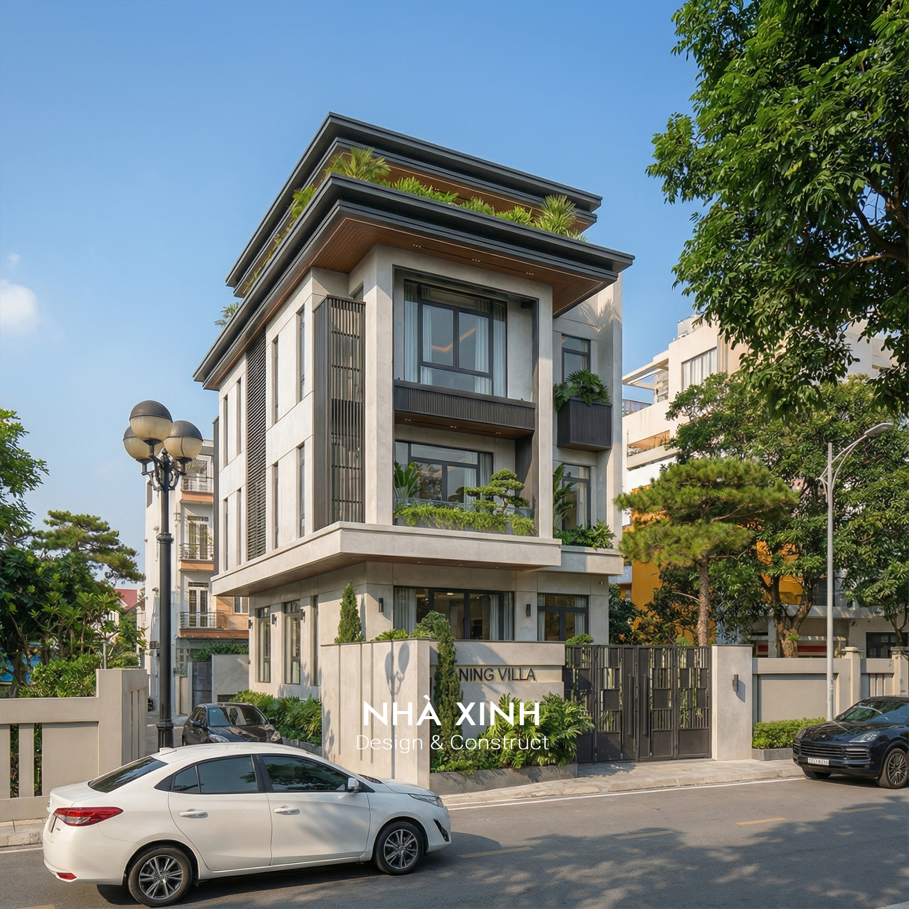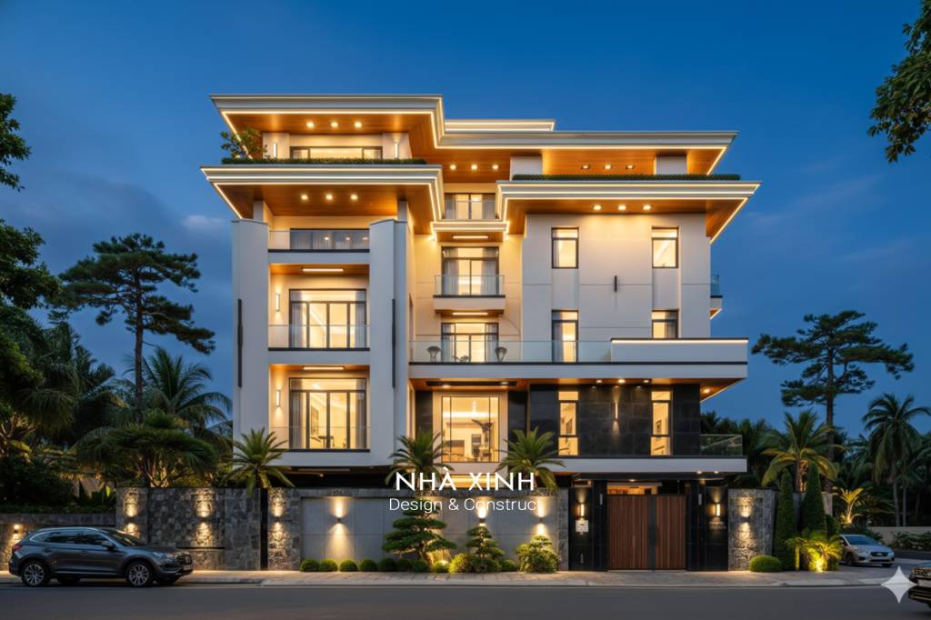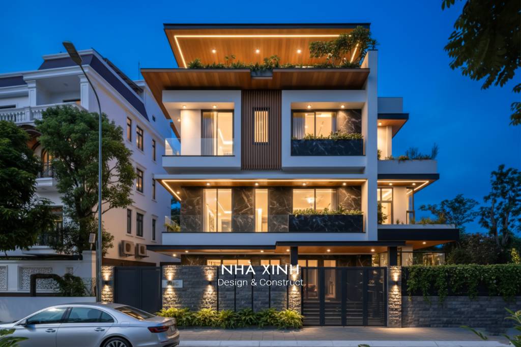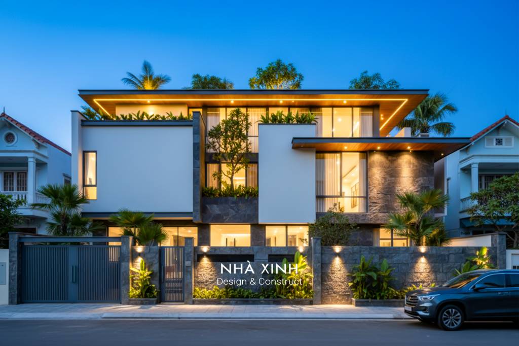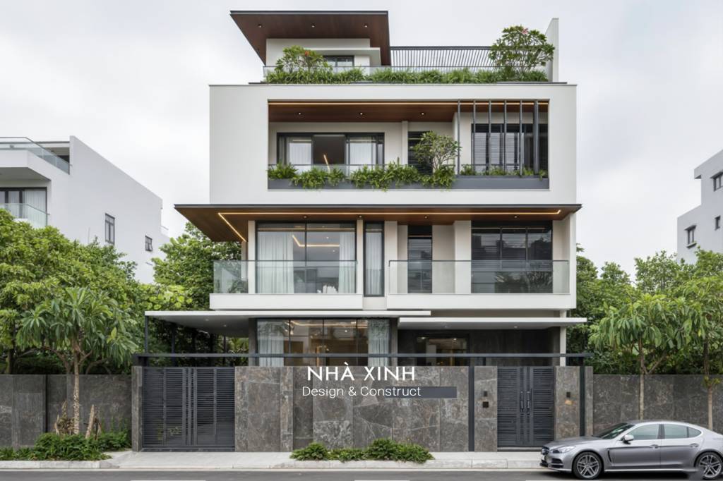 Mẫu thiết kế biệt thự đẹp dạng phố 2 tầng hiện đại, giao thoa tinh