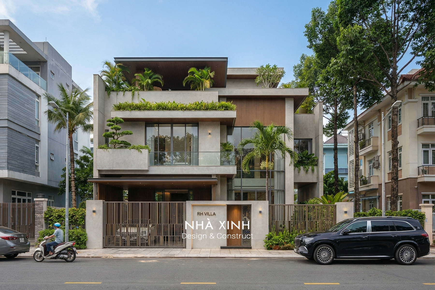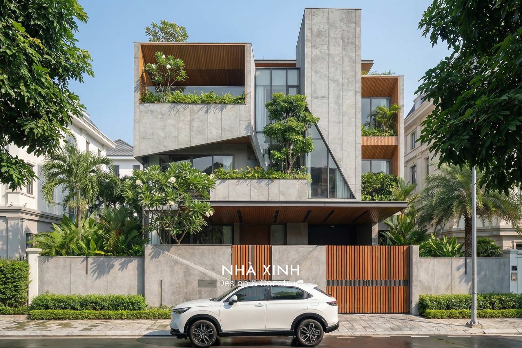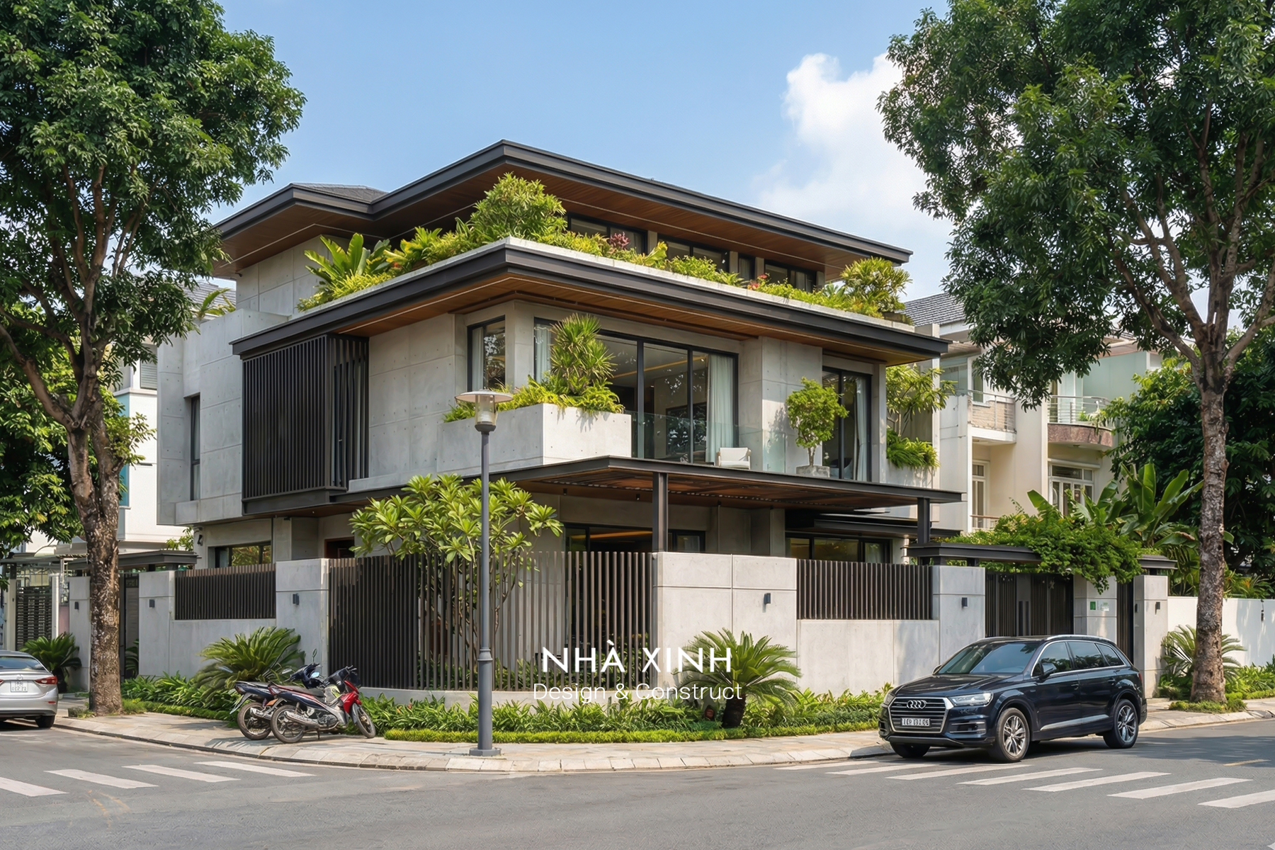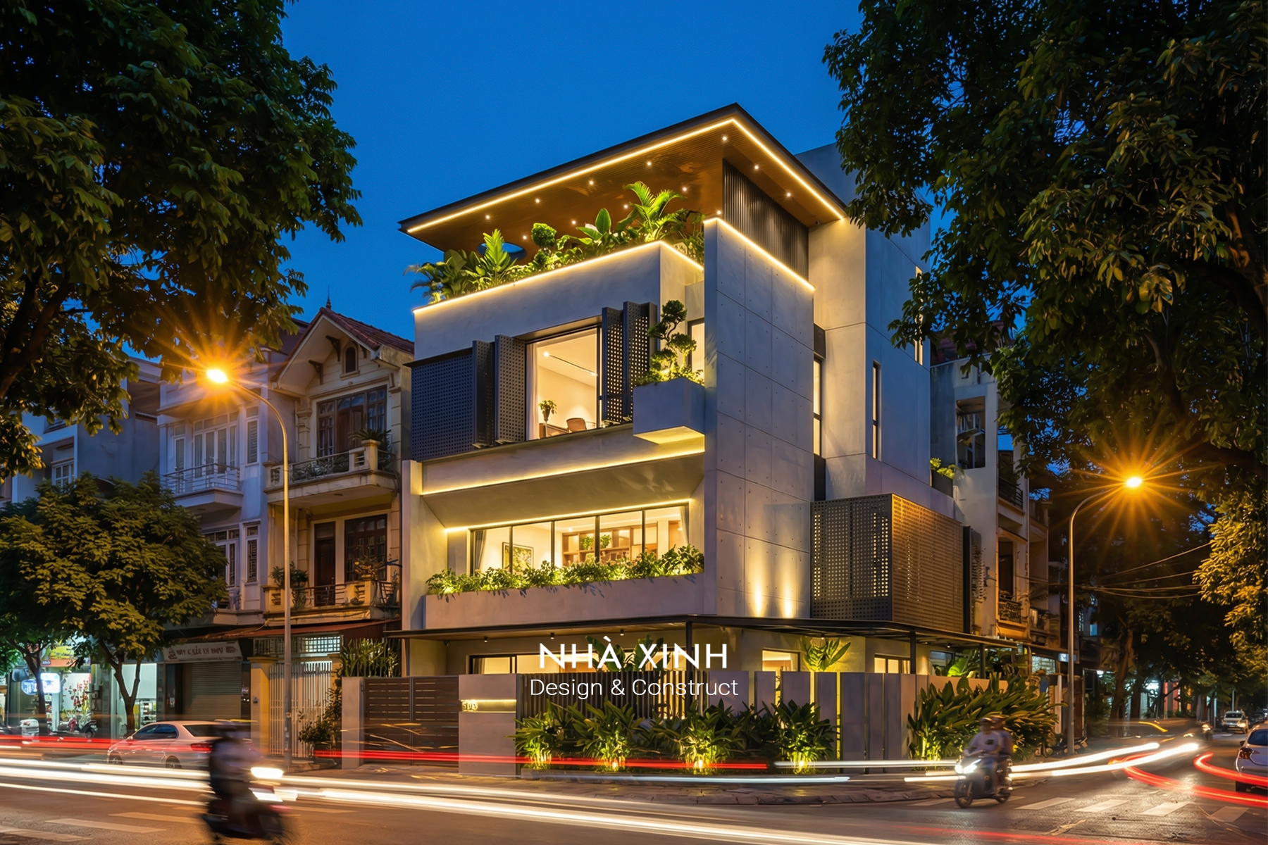 Mẫu thiết kế biệt thự đẹp dạng phố 2 tầng hiện đại, giao thoa tinh