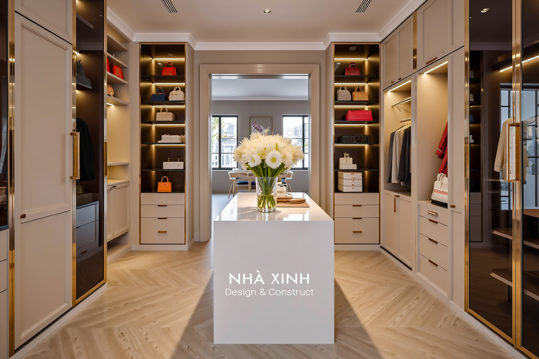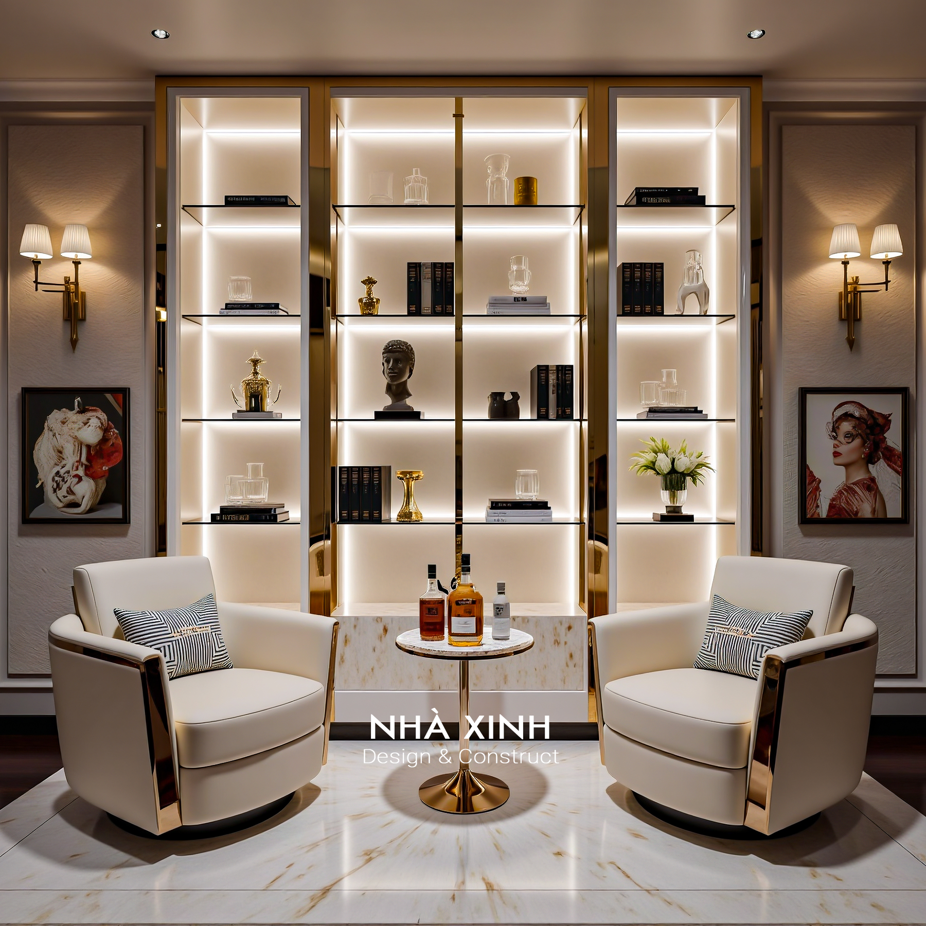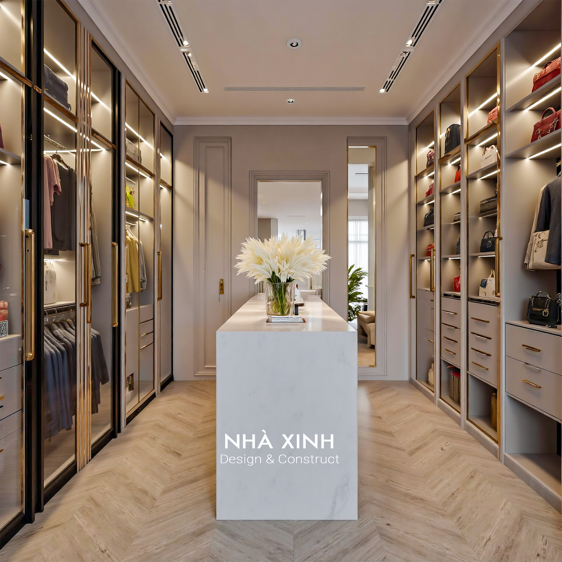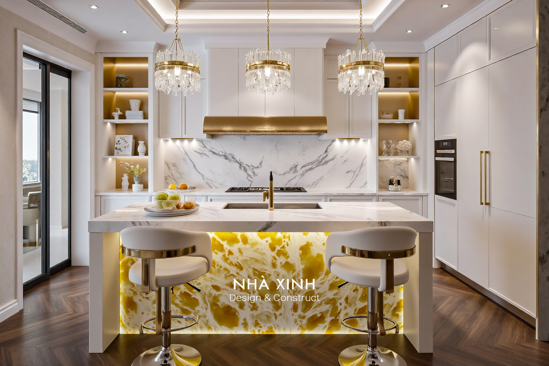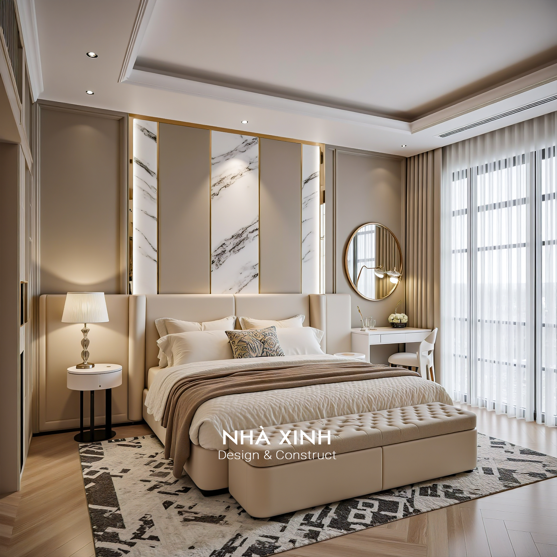 Biệt thự sử dụng đá marble nhập khẩu, gỗ óc chó Bắc Mỹ cho nội thất và kim loại mạ vàng cho các chi tiết trang trí. Sự kết hợp này vừa đảm bảo độ bền, vừa tôn vinh vẻ đẹp sang trọng vượt thời gian.