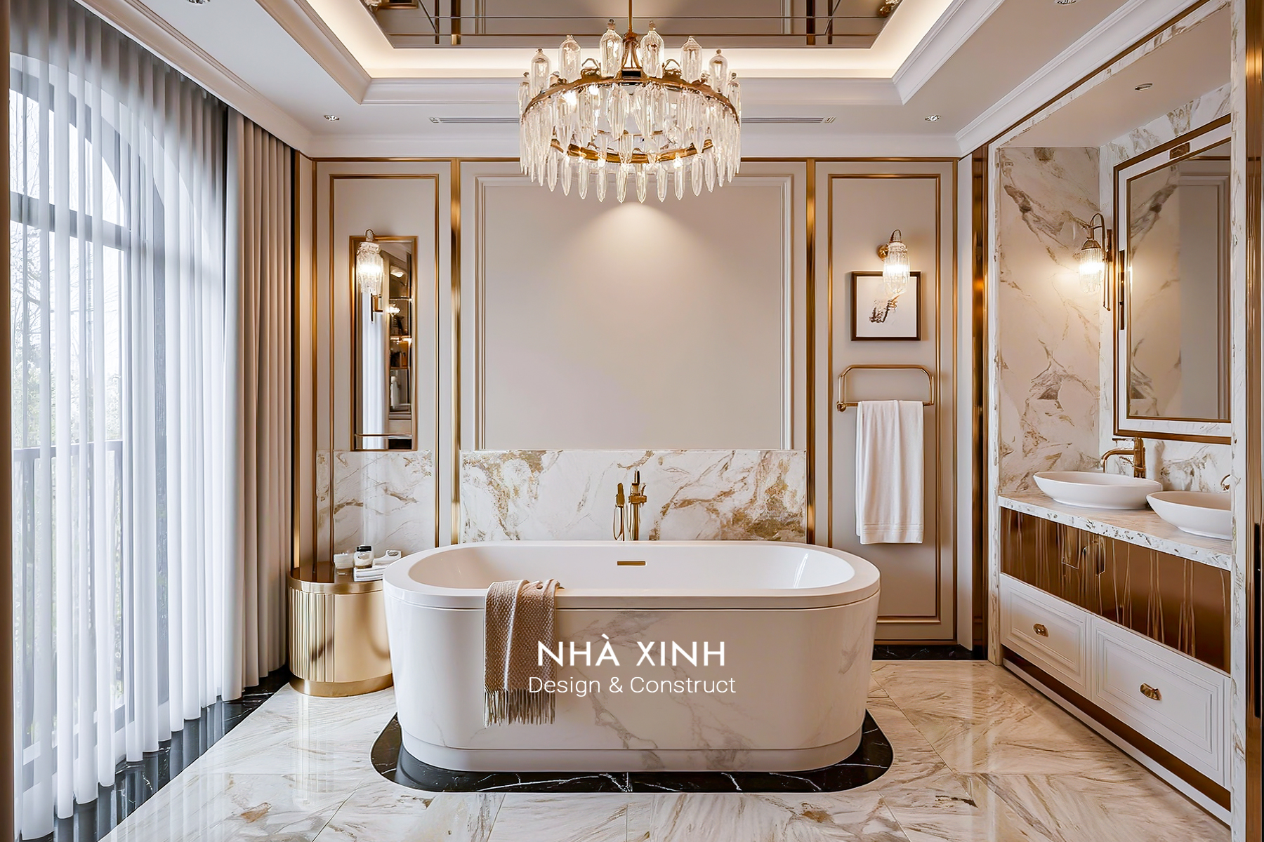 Biệt thự sử dụng đá granite nguyên khối, marble nhập khẩu, gỗ lim Nam Phi và các chi tiết mạ vàng 24K. Mỗi vật liệu đều được tuyển chọn kỹ lưỡng để vừa mang lại vẻ đẹp tinh xảo vừa đảm bảo độ bền vượt trội.