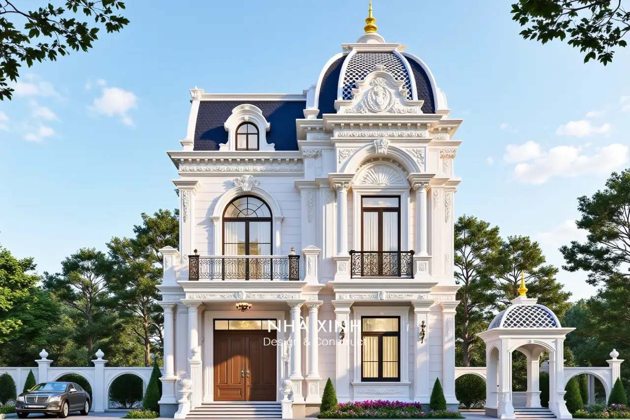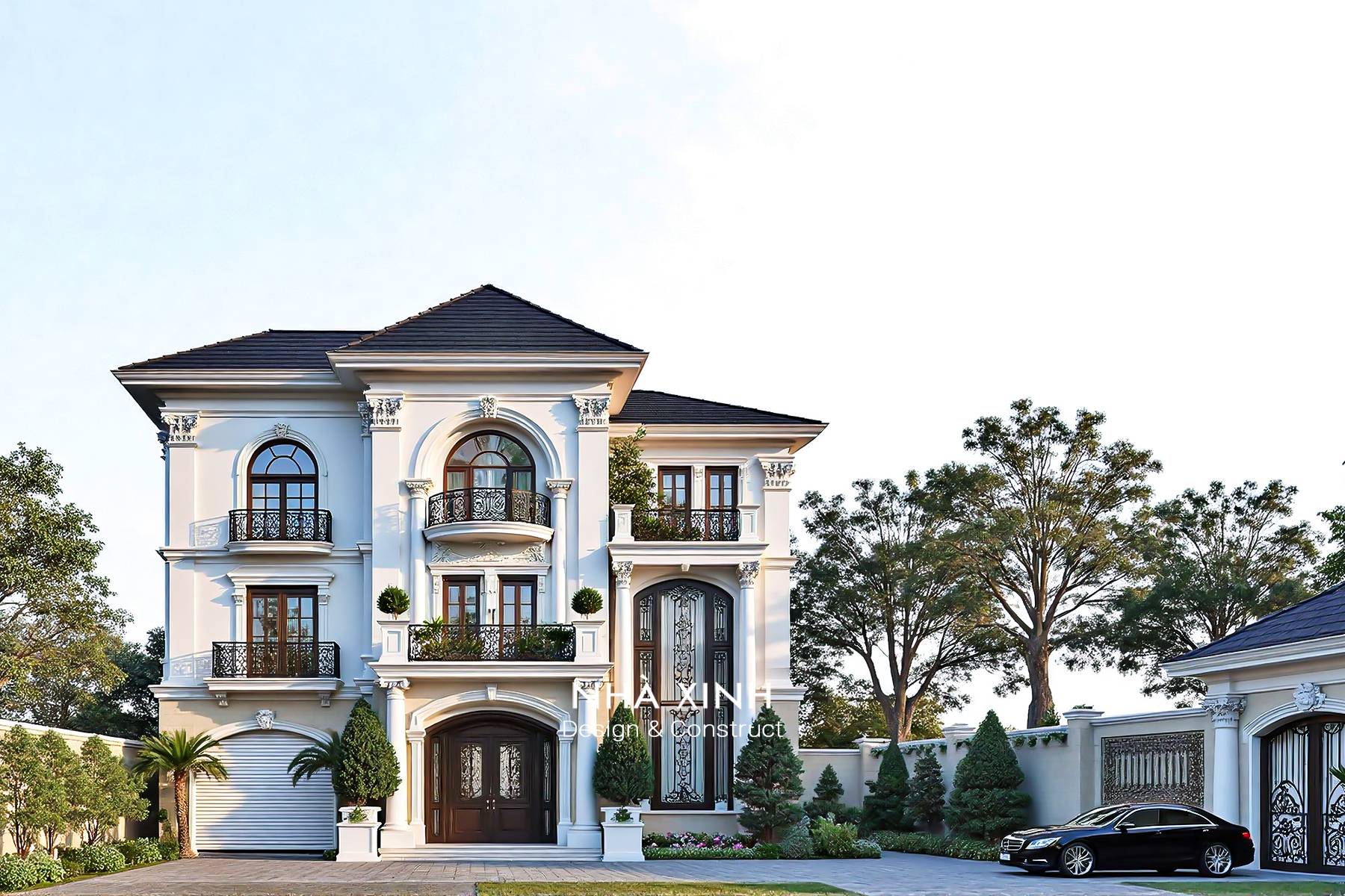 Thiết Kế Biệt Thự Tân Cổ Điển Trắng Sang Trọng Với Mái Mansard Đẳng Cấp
