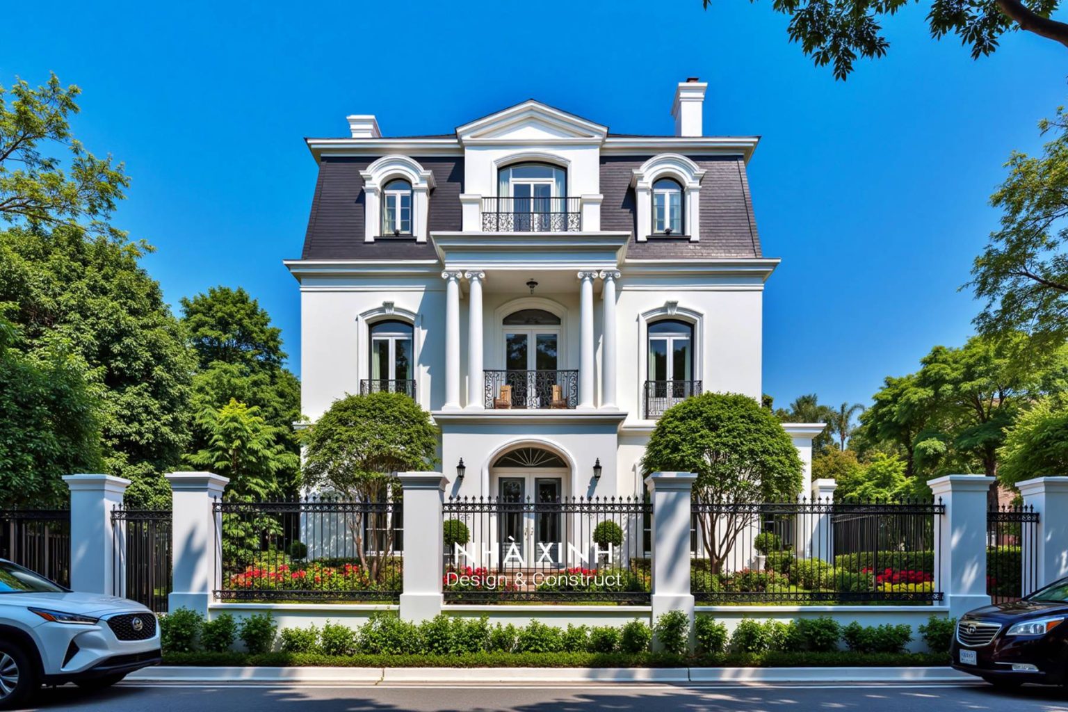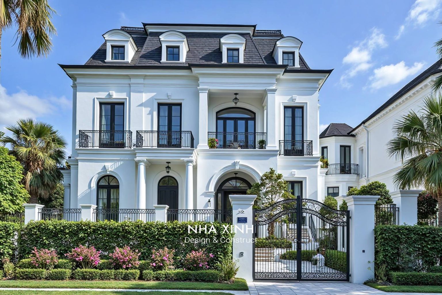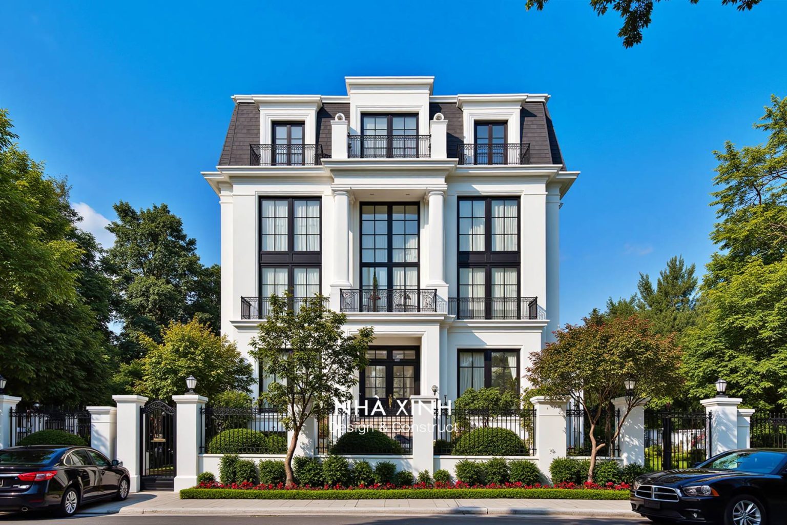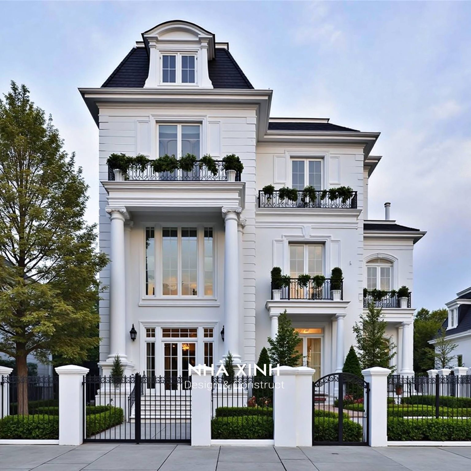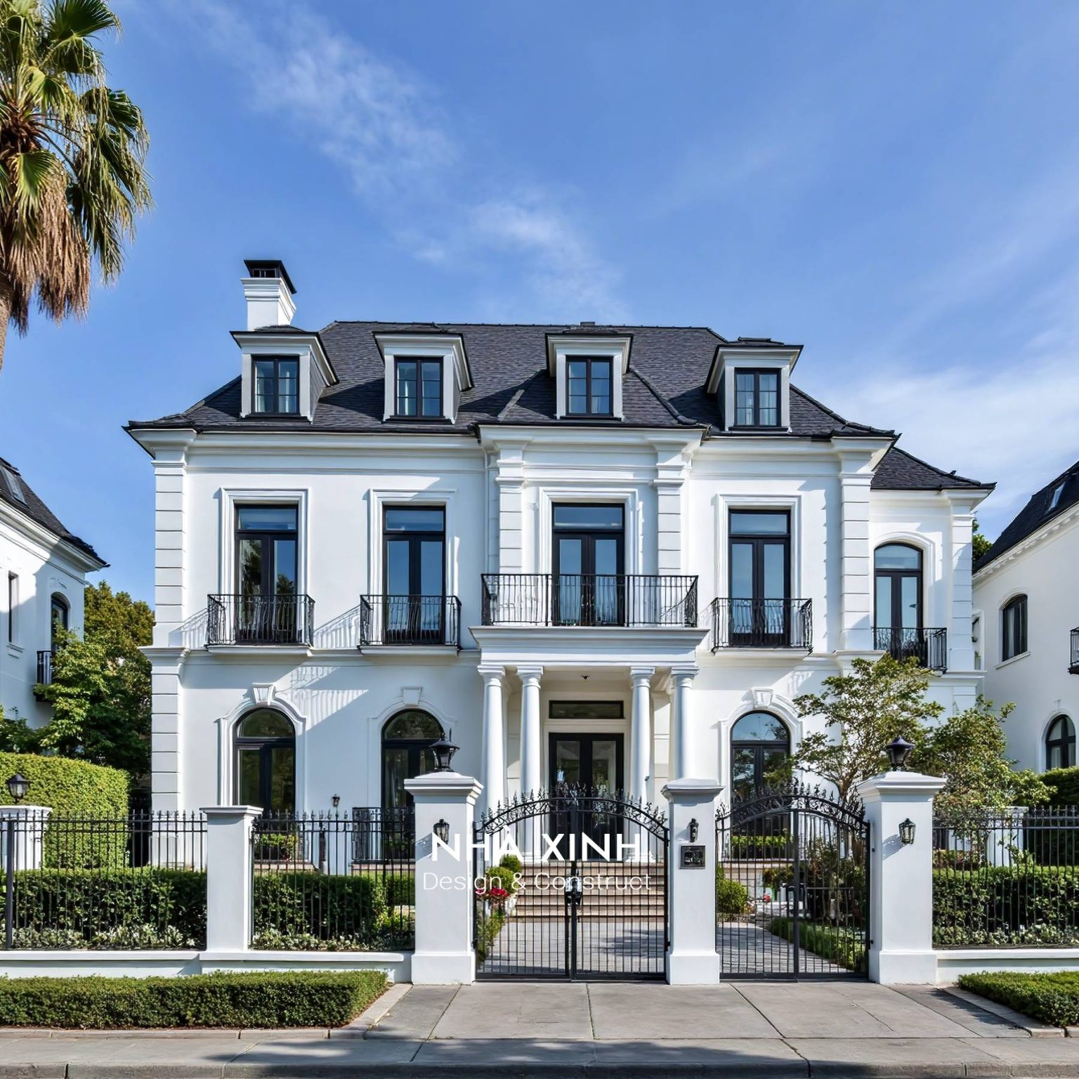 Thiết Kế Biệt Thự Tân Cổ Điển Trắng Sang Trọng Với Mái Mansard Đẳng Cấp