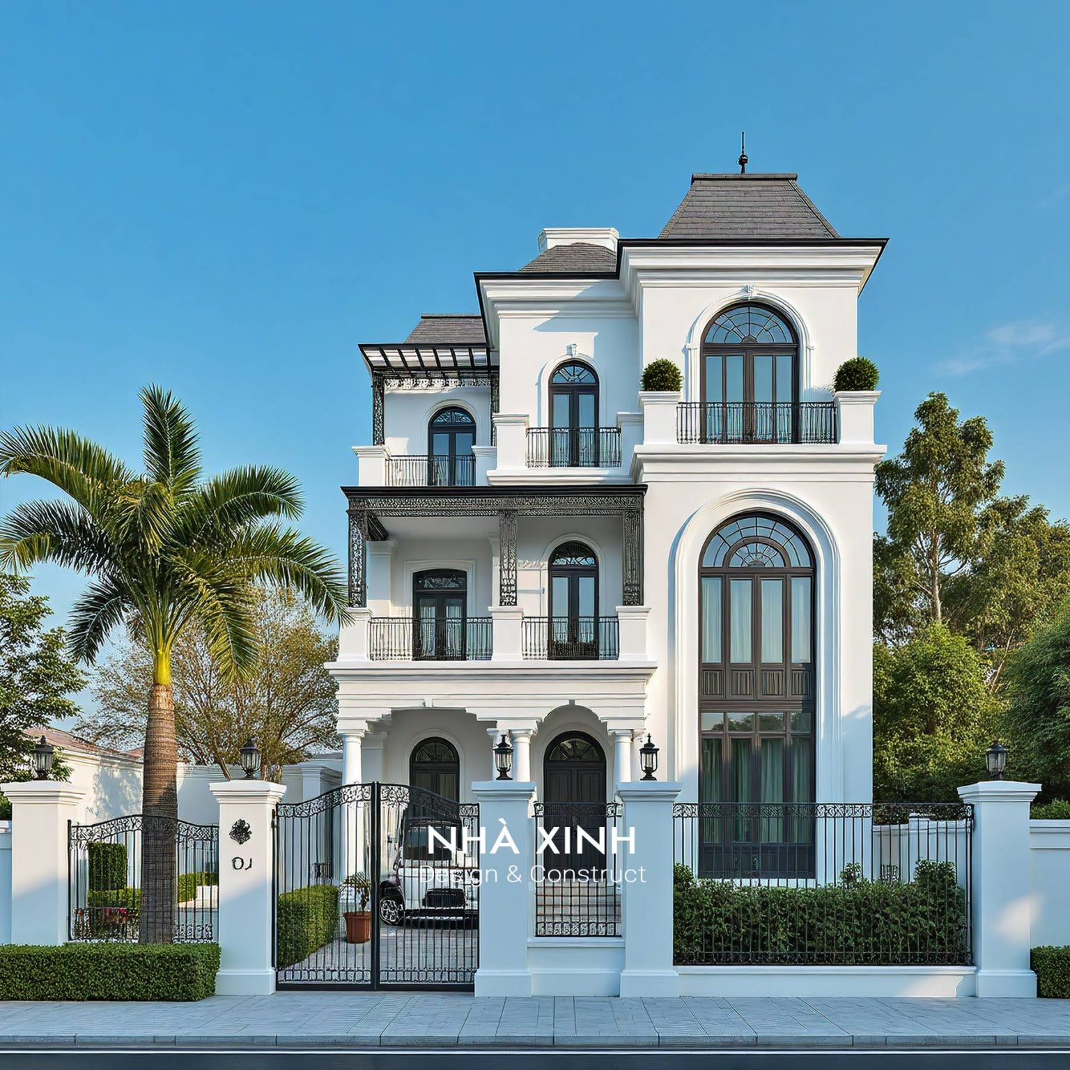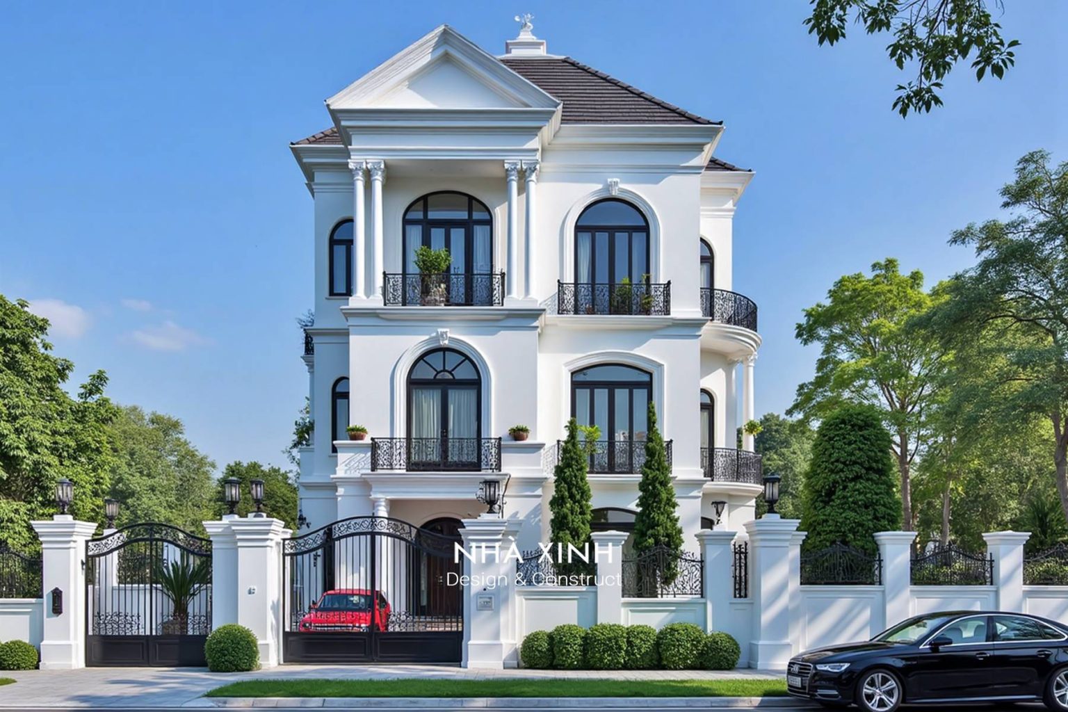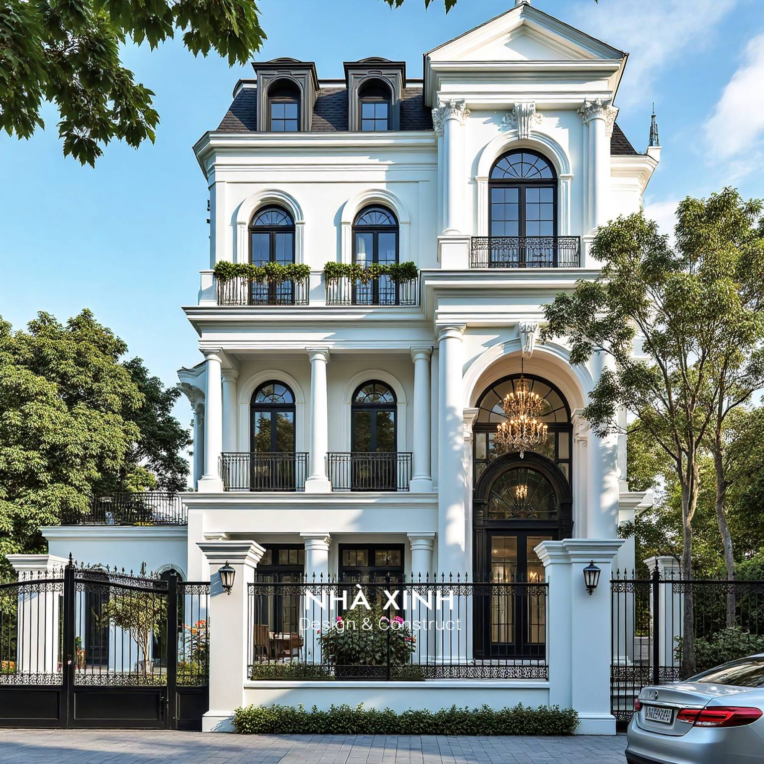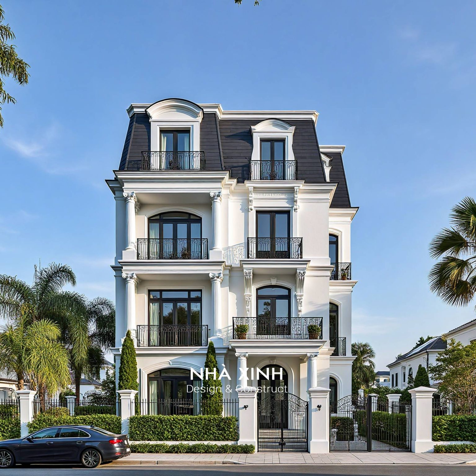 Thiết Kế Biệt Thự Tân Cổ Điển Trắng Sang Trọng Với Mái Mansard Đẳng Cấp