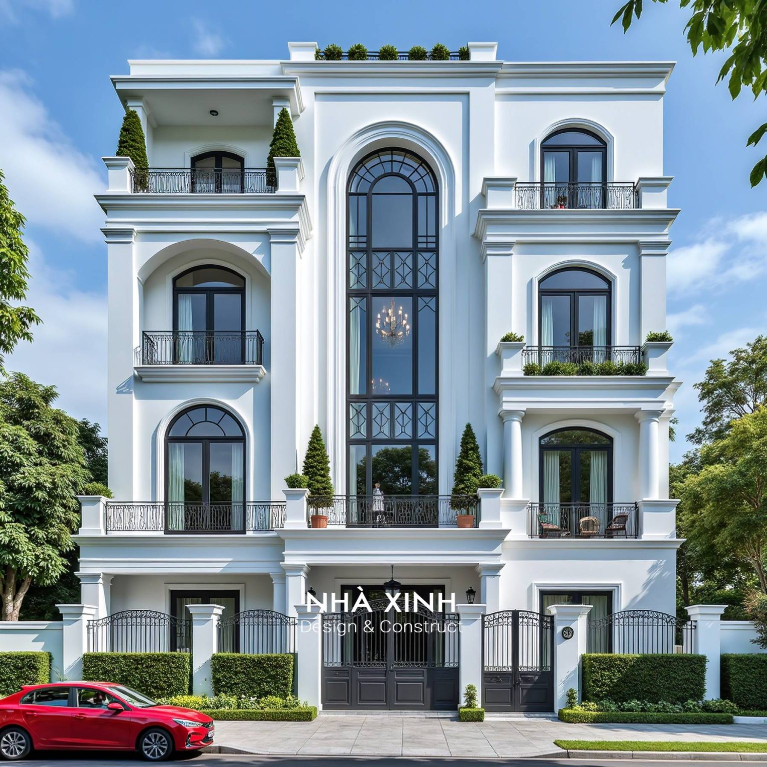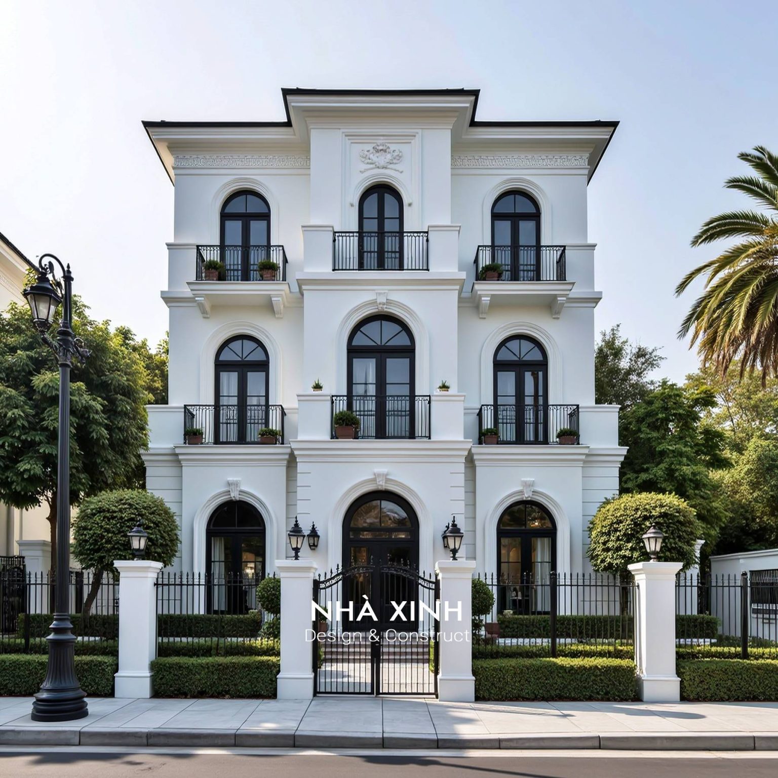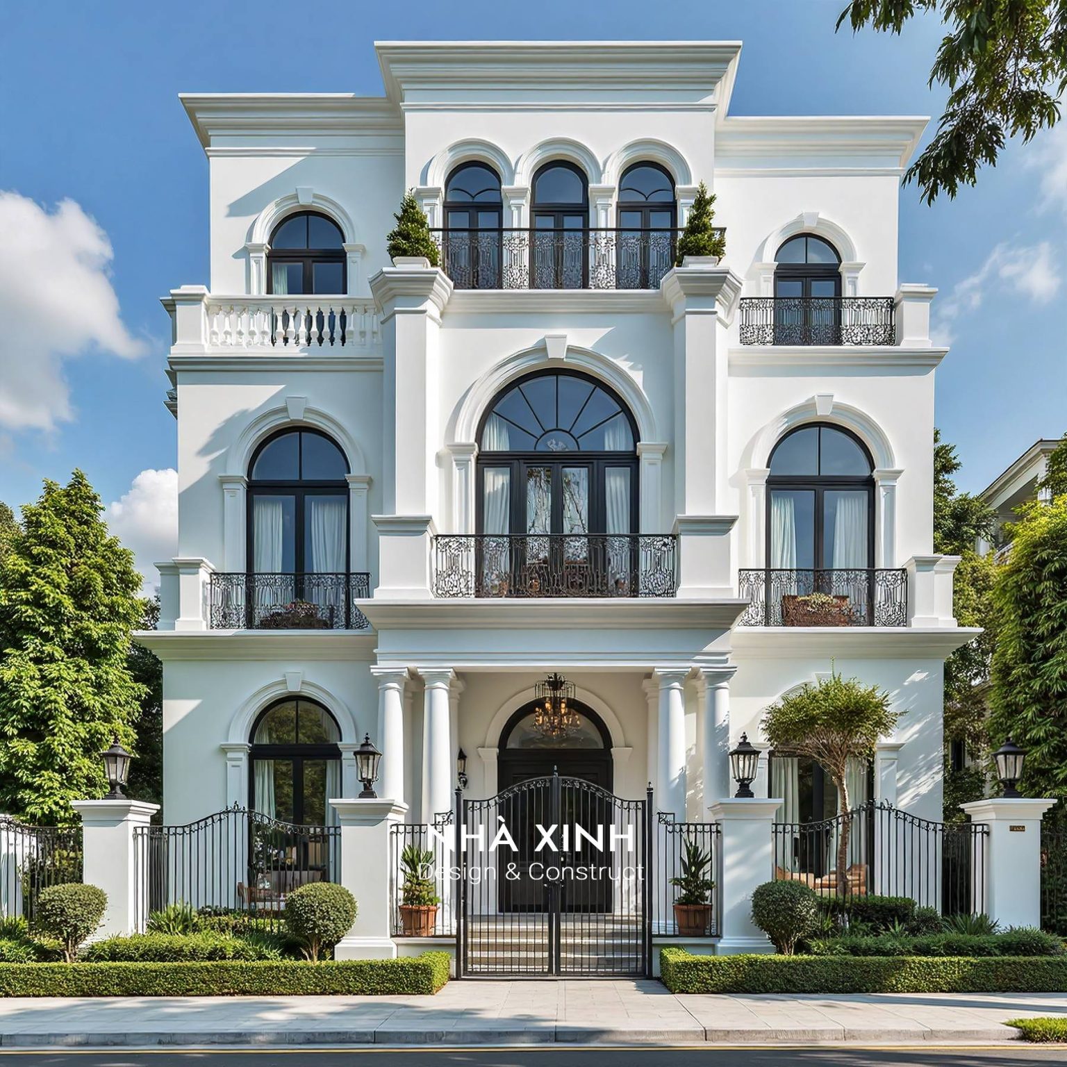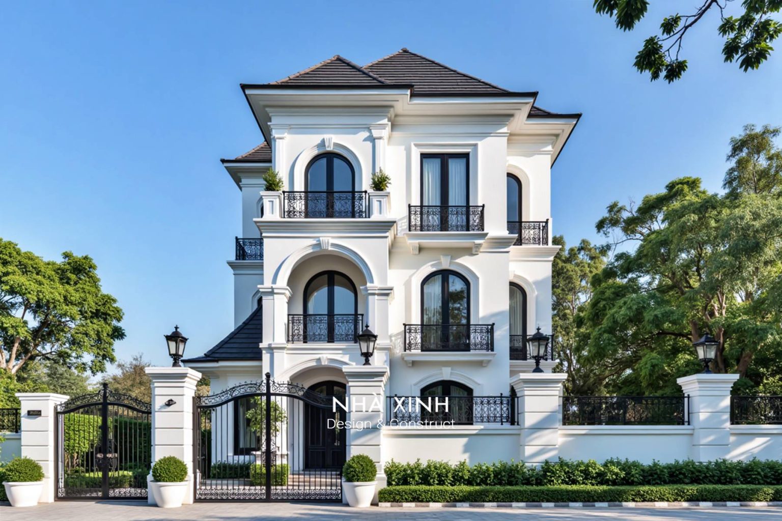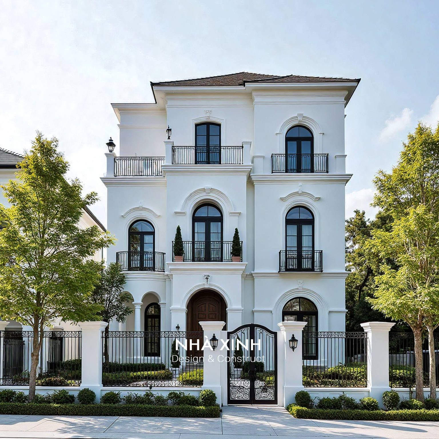 Thiết Kế Biệt Thự Tân Cổ Điển Trắng Sang Trọng Với Mái Mansard Đẳng Cấp