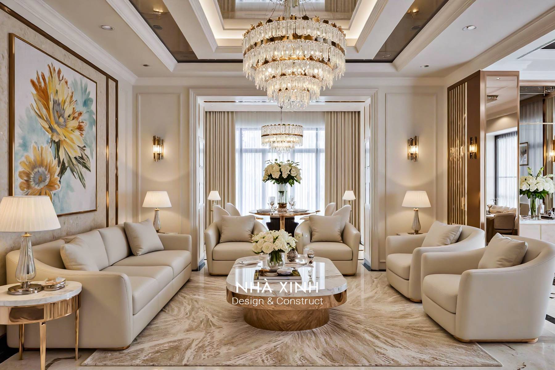 Lưu ý: Để đảm bảo tính riêng tư và bảo mật thông tin khách hàng, Nhà Xinh chỉ chia sẻ một số khung hình của dự án. Quý khách hàng vui lòng liên hệ trực tiếp Nhà Xinh để được tư vấn chi tiết và xem toàn bộ không gian nội thất của dự án.