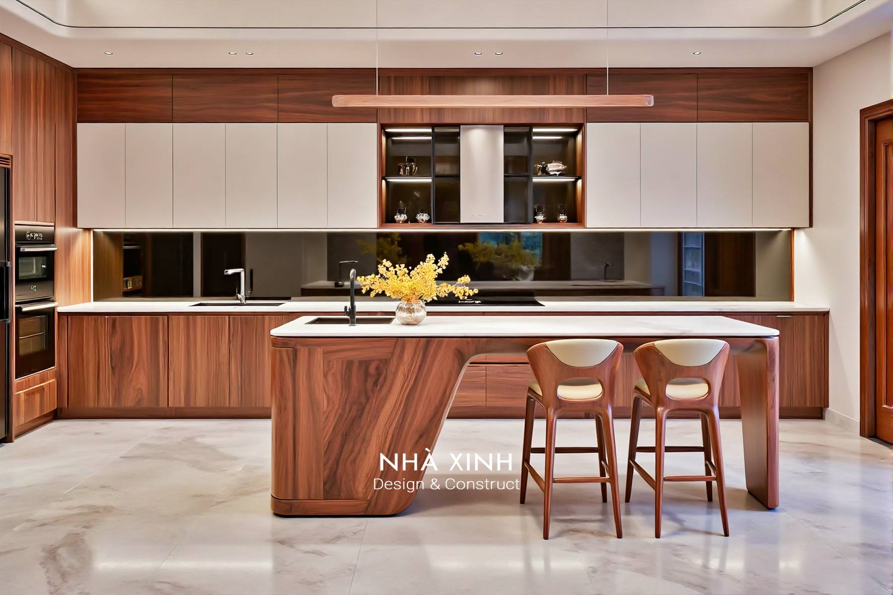 Không gian phòng bếp được thiết kế với đường nét tinh tế