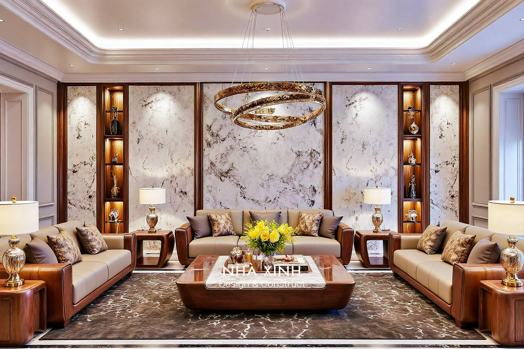 Nội thất không gian biệt thự phong cách tân cổ điển chất liệu gỗ óc