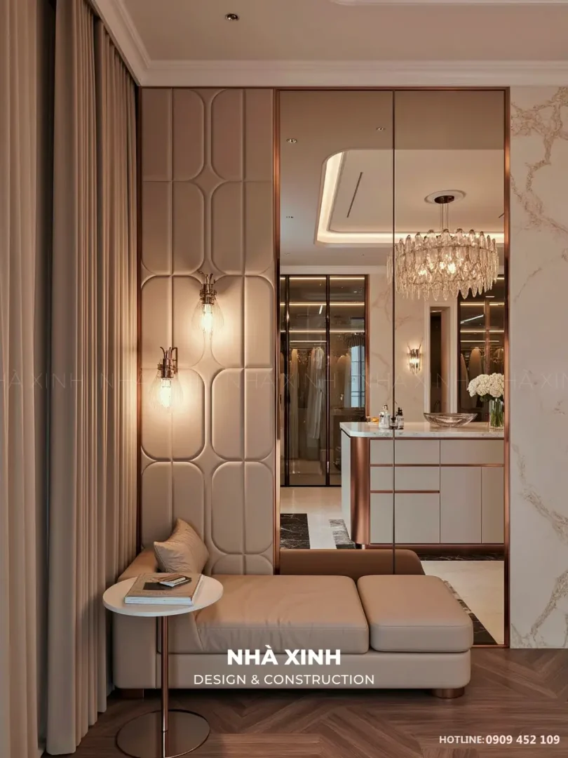 Nội thất tại Rose Villa Elysium là sự kết hợp táo bạo giữa các phong cách thiết kế Luxury Custom và Modern Art Deco, tạo nên một không gian không chỉ sang trọng mà còn tràn đầy cá tính. Các vật liệu độc quyền và đắt giá như đá Onyx xuyên sáng, kim loại mạ vàng, da thuộc cao cấp và gỗ tự nhiên được chế tác thủ công, mang đến vẻ đẹp xa hoa và bền vững. Mỗi đường nét, mỗi mảng khối đều được tính toán kỹ lưỡng, từ những bức tường ốp đá hoa văn độc đáo đến hệ thống chiếu sáng thông minh tạo hiệu ứng nghệ thuật. Các không gian chức năng được bố trí linh hoạt, tối ưu hóa sự thoải mái và tiện nghi, phục vụ mọi nhu cầu từ giải trí đến nghỉ ngơi. Rose Villa Elysium không chỉ là một tổ ấm, mà là một kiệt tác kiến trúc nội thất, nơi quý vị tận hưởng một cuộc sống thượng lưu không giới hạn, phản ánh đúng gu thẩm mỹ tinh tế và vị thế của mình.